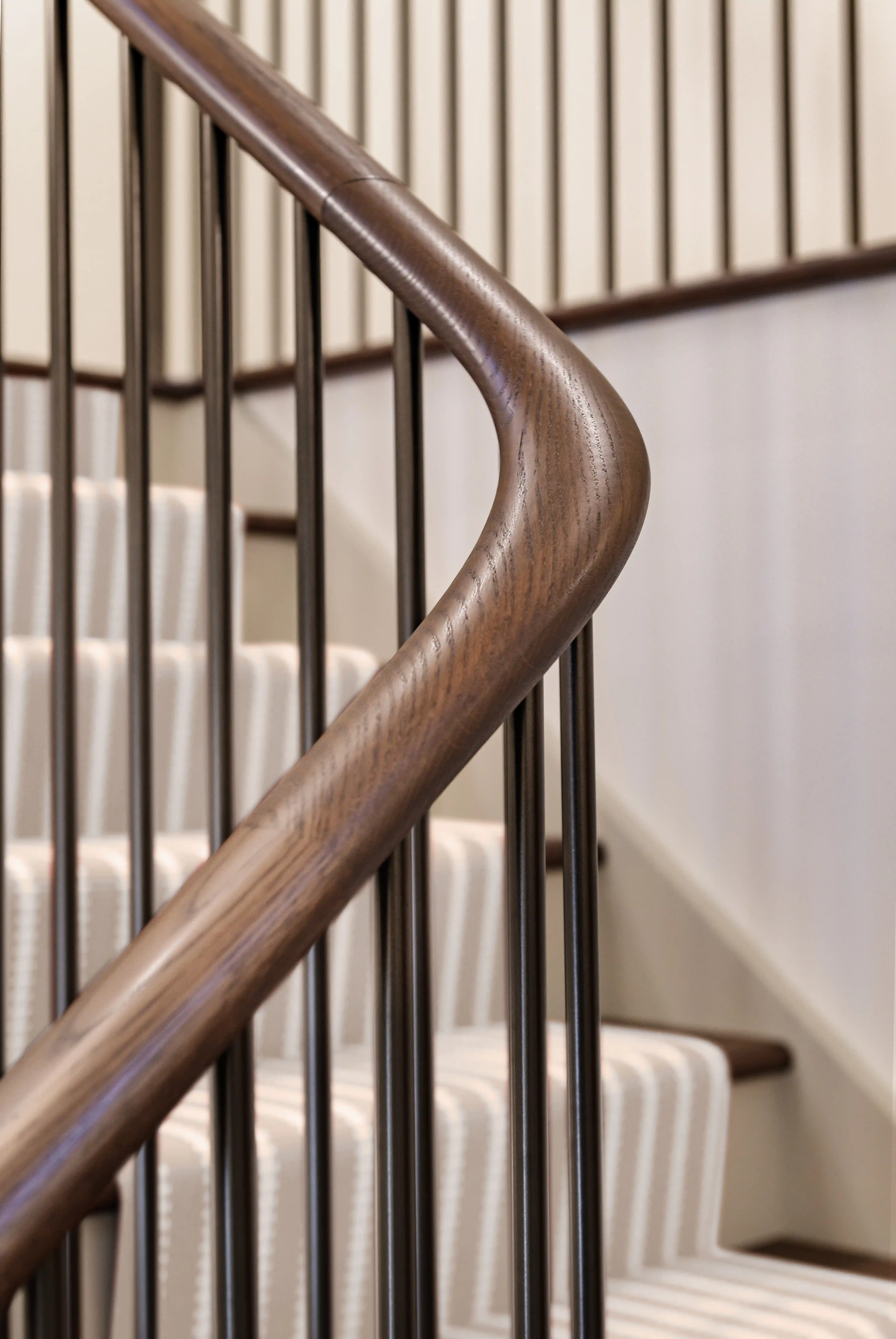 Curved handrails must do more than impress visually: they need to feel right in the hand, work naturally with movement and flow of the staircase, and remain sturdy for the next several decades, even with regular use.