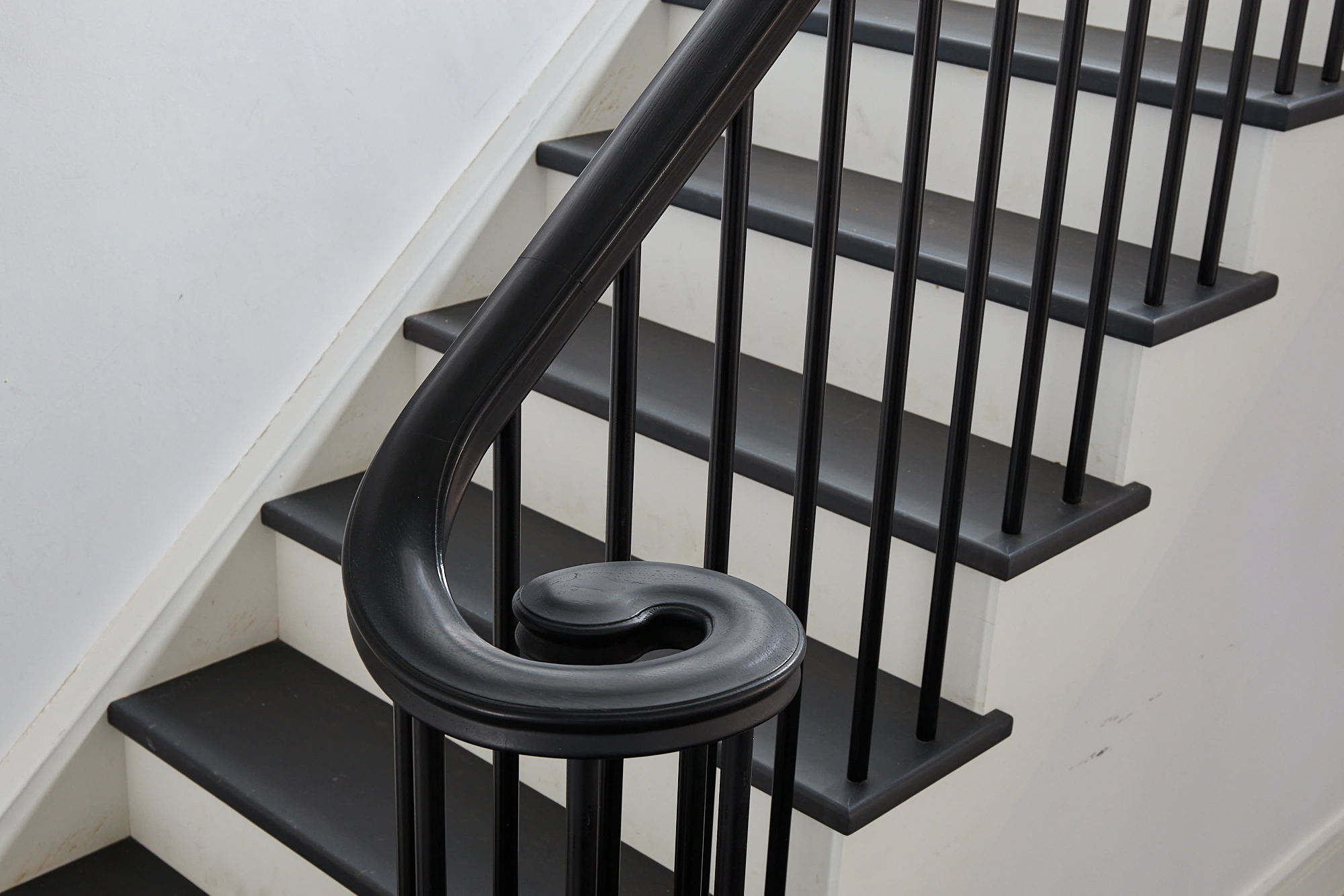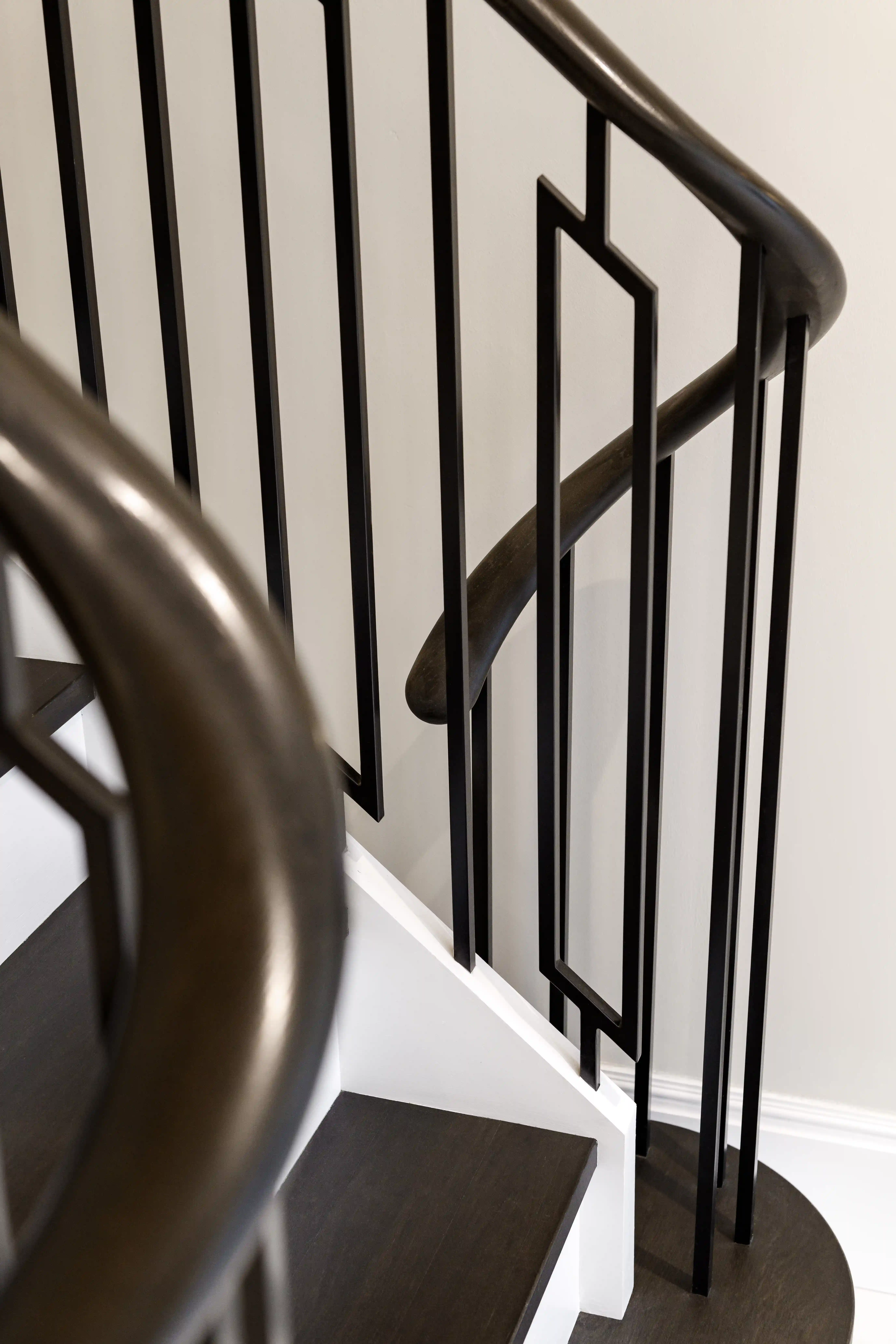 As bespoke designers with accomplished metalworking and carpentry workshops, we design and craft high-end curved staircase starts across a range of styles and materials. Many of our clients in heritage homes prefer classic volutes or helical spiral starts, while modern or architect-designed homeowners often go with custom-shaped returns that flow down to the floor or first tread.