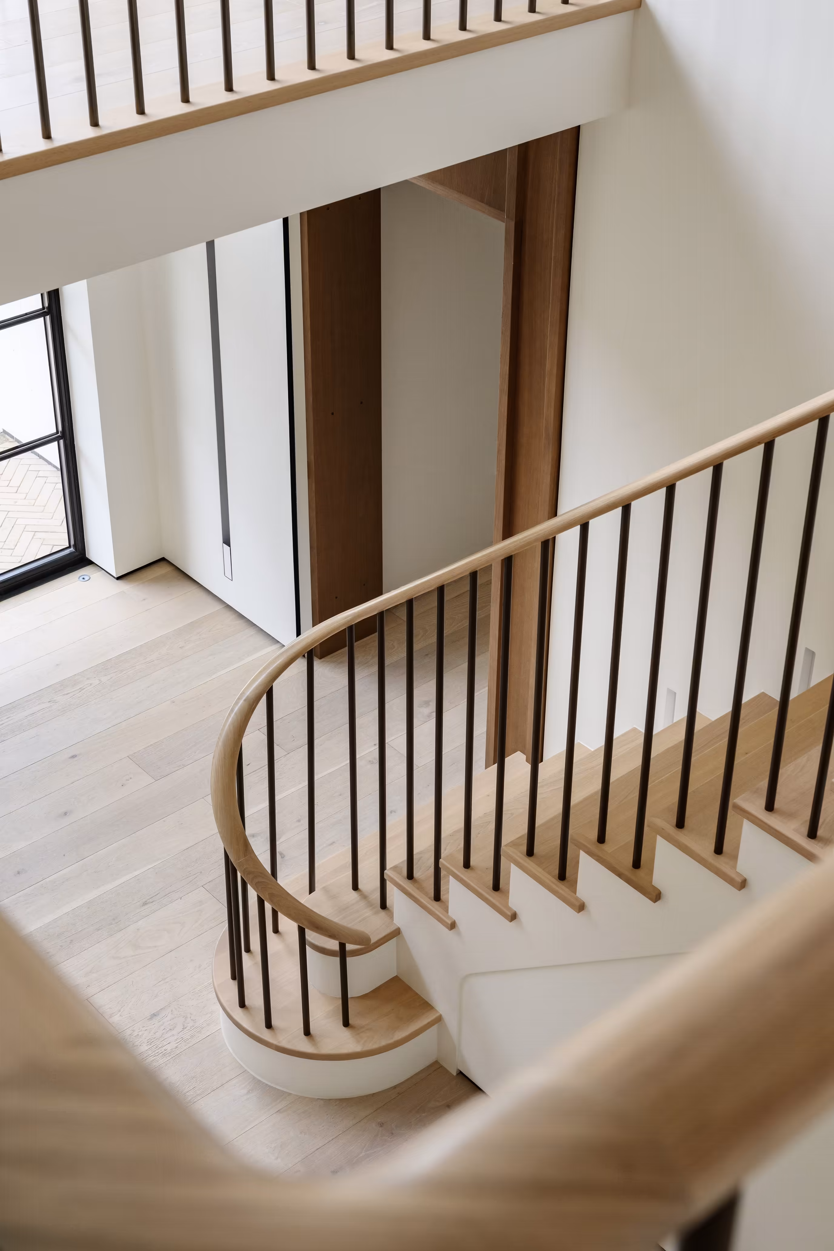 • Beautiful opportunities for contrasting finishes—such as white strings paired with natural oak treads or contrast rails against powder-coated spindles—for depth and character.